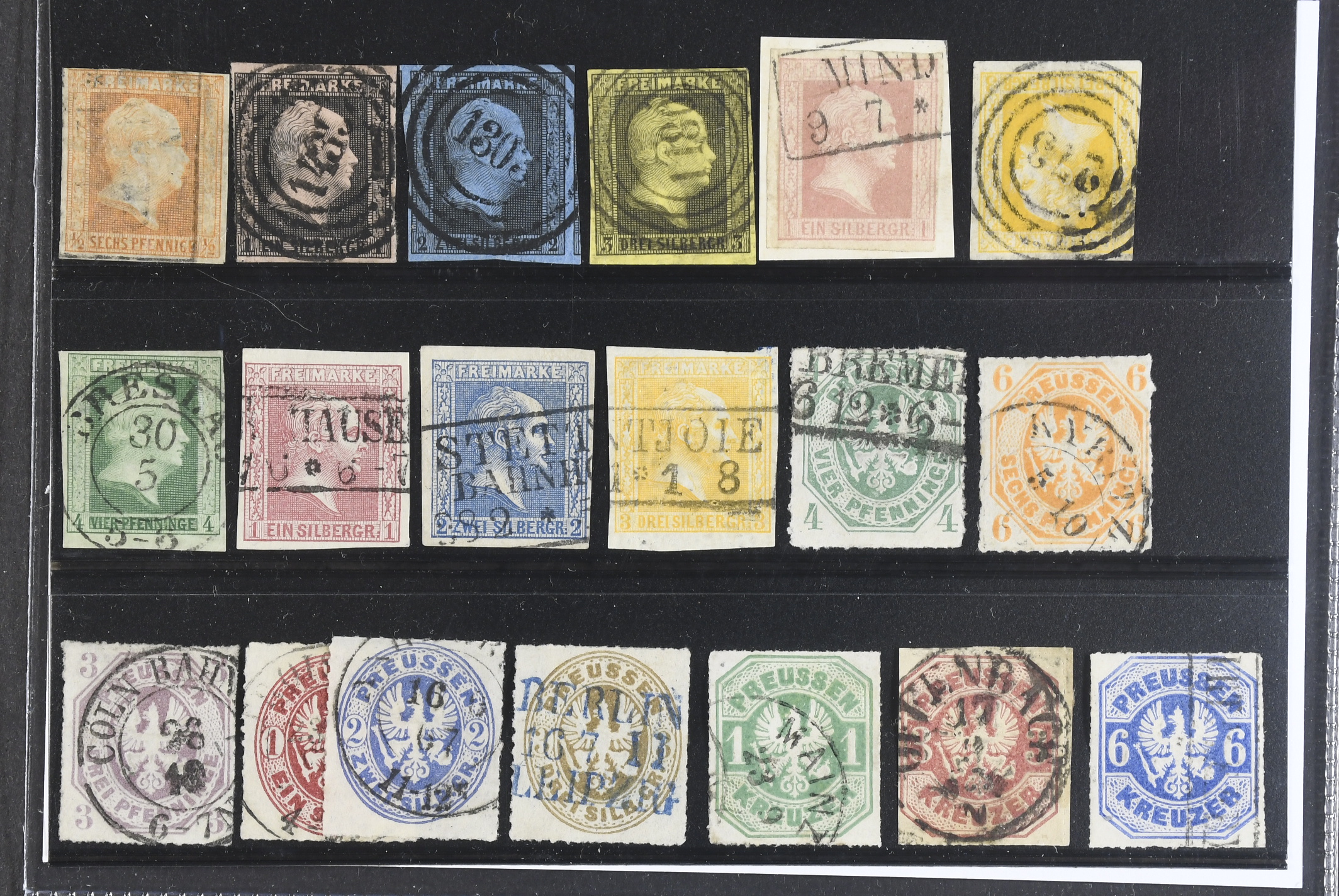Germany, Prussia. Used 1850–1867. All different, e.g. Mi 1–4, 6, 8–9, 11–12, 19, 22, 24–25. Mostly good quality. Mi € 538 (19)
