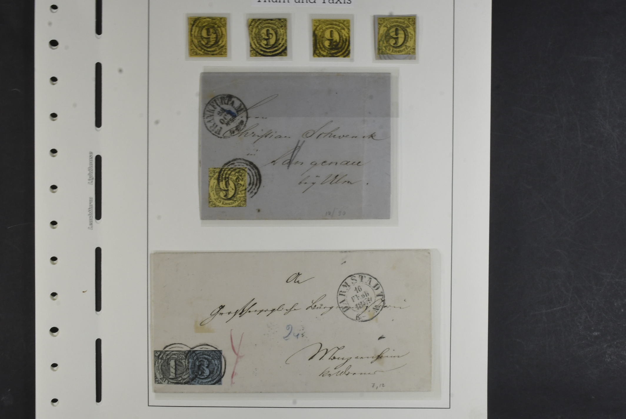 Germany, Thurn und Taxis. Collection/accumulation ★/⊙ 1852–1867 on leaves. Well filled incl. better stamps and much shades mixed used and mint and eight covers. Please see a selection of scans at www.philea.se. Mostly fine quality. (118+8 covers)