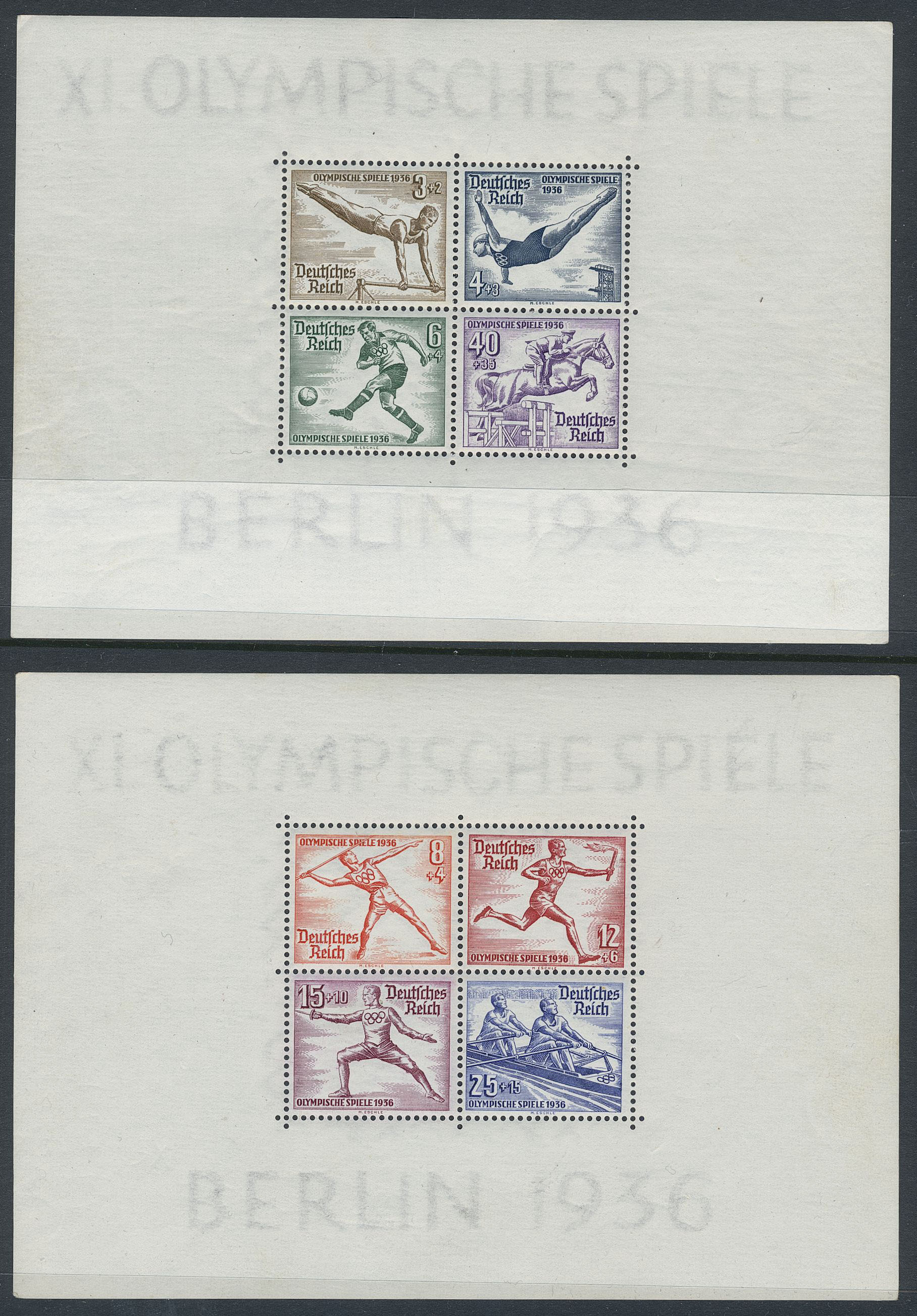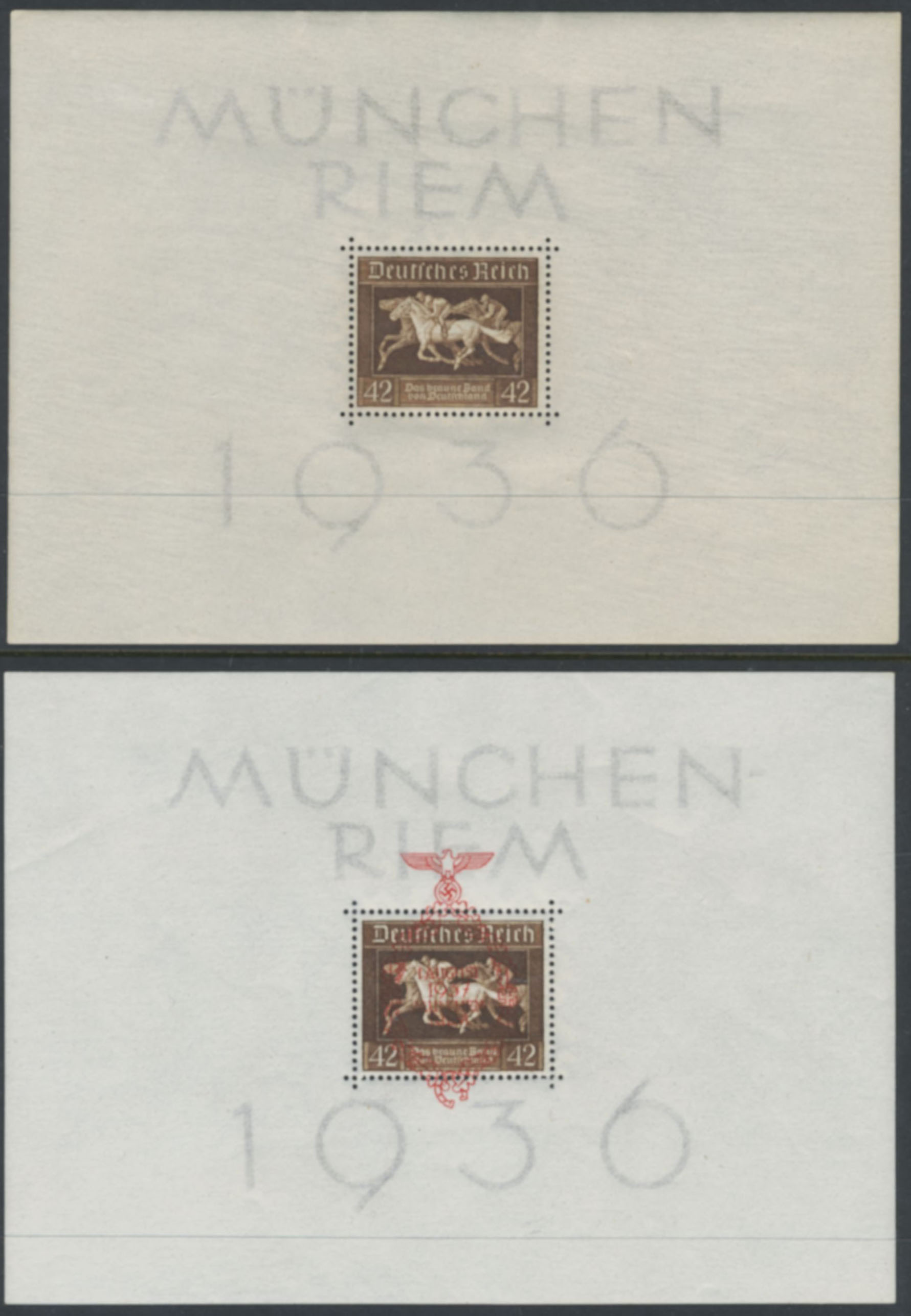 Germany, Reich. Michel 621 ★★, 1936 “Das Braune Band Rennen” souvenir sheet 4 and also blocks 5, 6 and 10. (Small barely visible pencil note on back of block 10). EUR 462