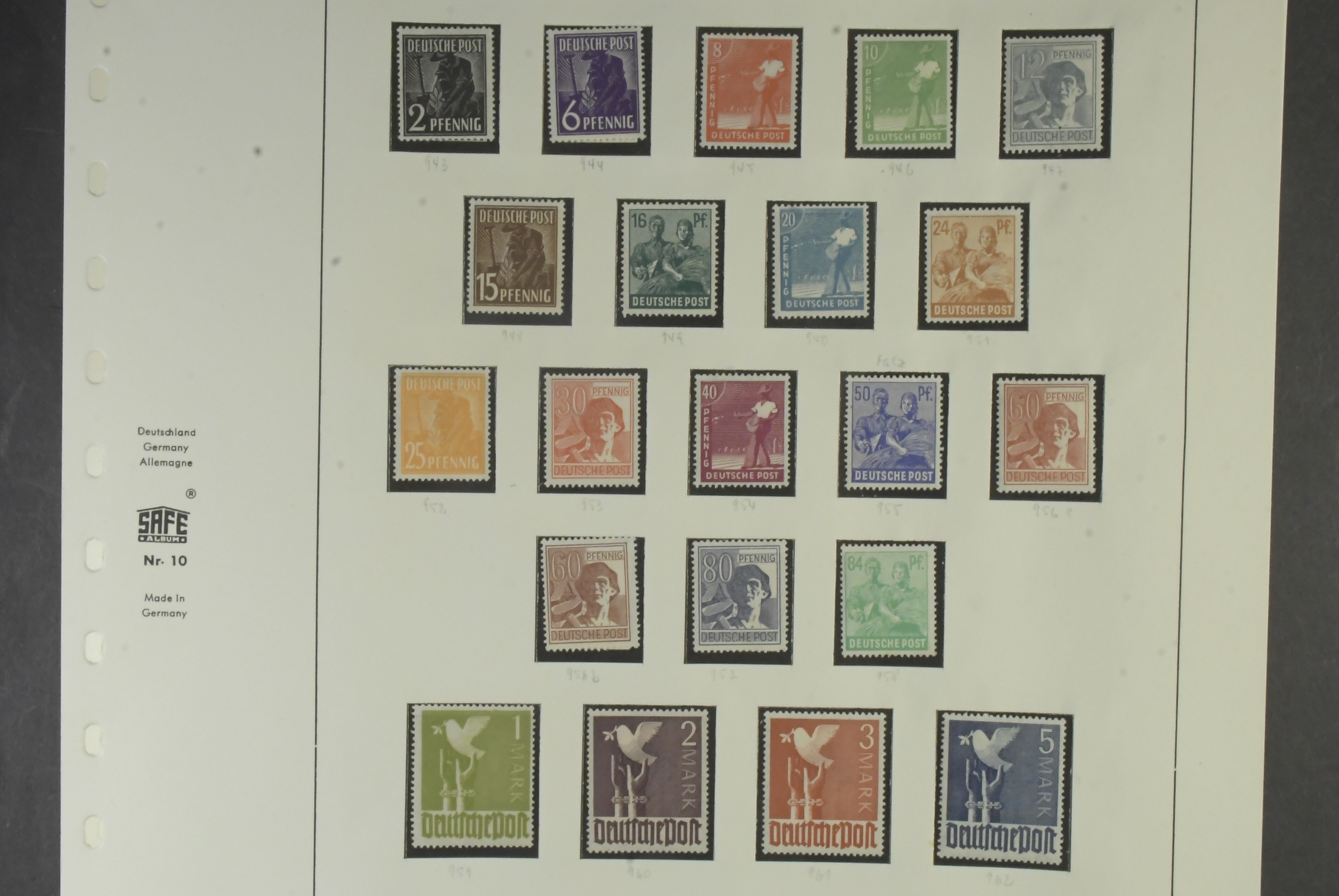 Germany, zones. Collection ★★/★/⊙ 1945–1950 on leaves. Common + American/British, incl. a few souvenir sheets, etc. Mostly good quality. (350)
