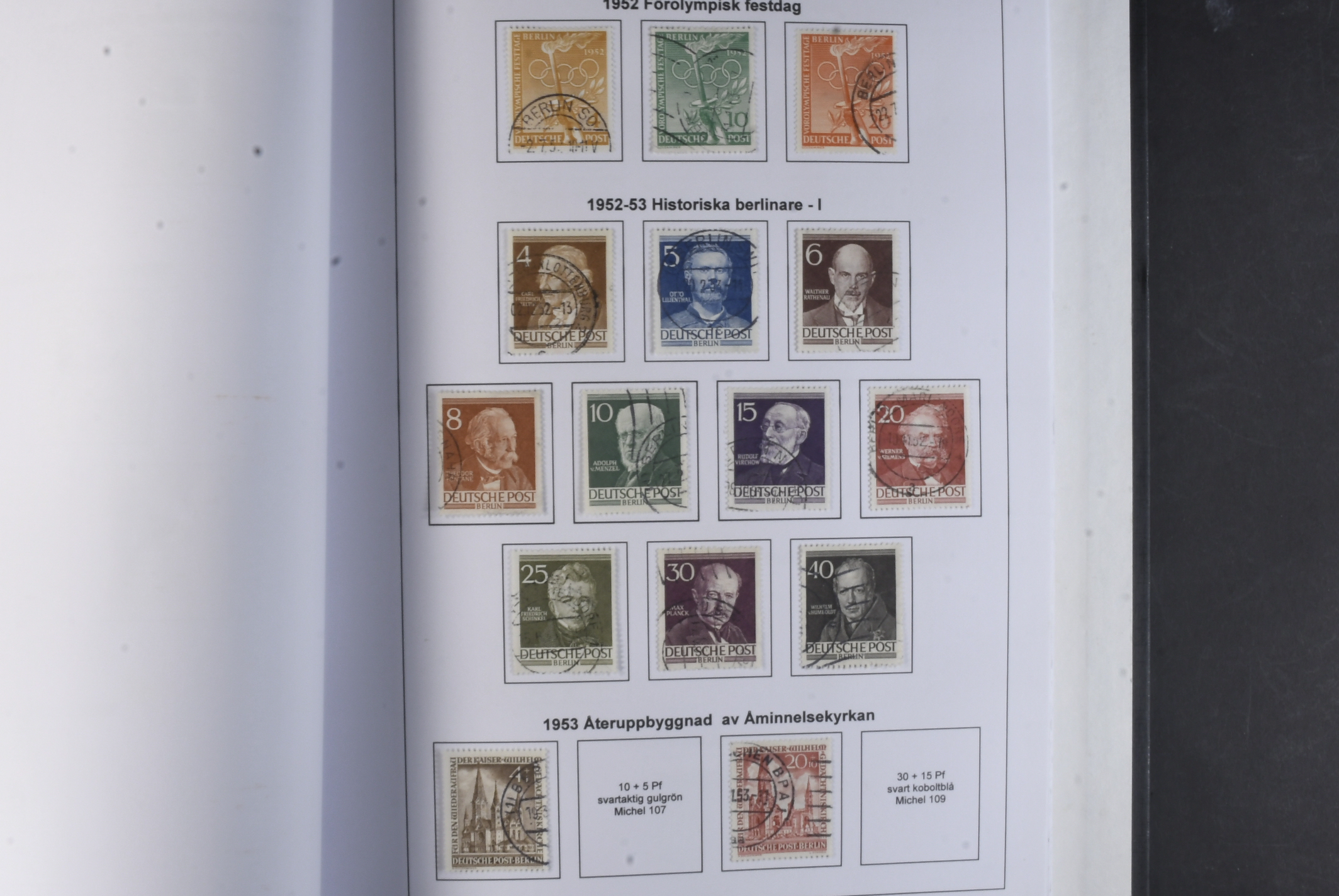 Germany, Berlin. Collection used 1948–1990 in album. A very well filled collection. Also incuded descriptive texts about the stamps from Berlin. Please see a selection of scans at www.philea.se. Fine quality. (ca. 400)