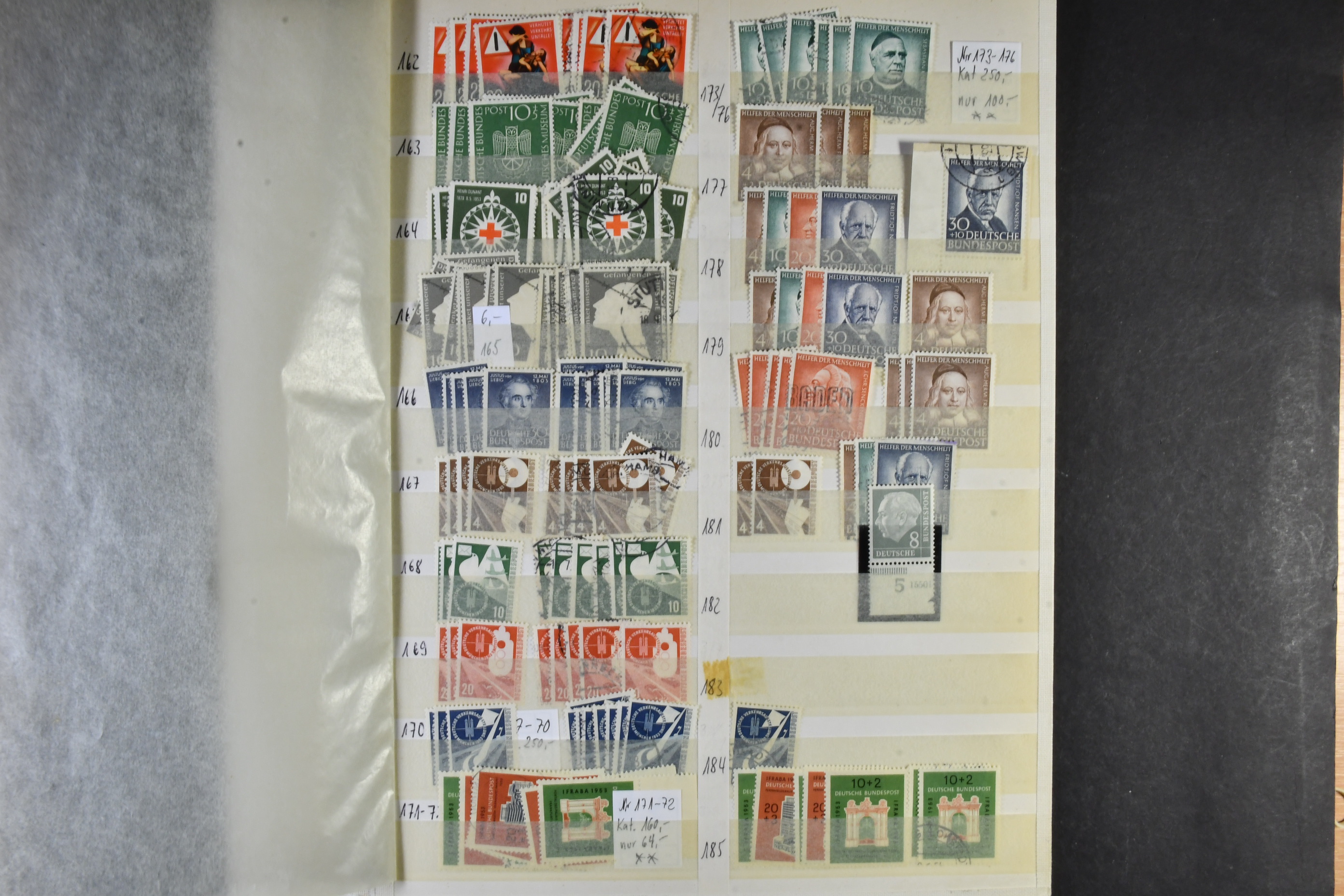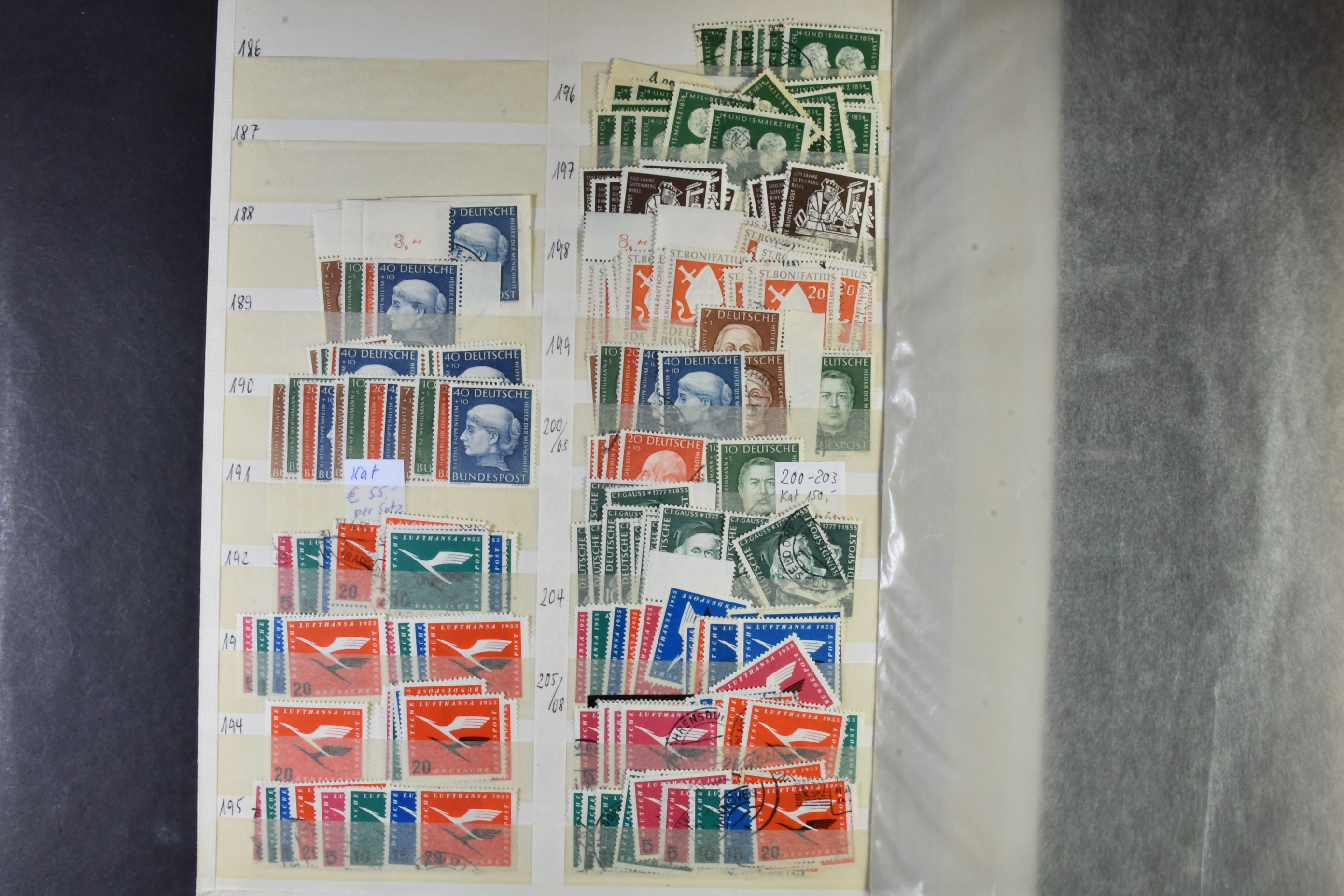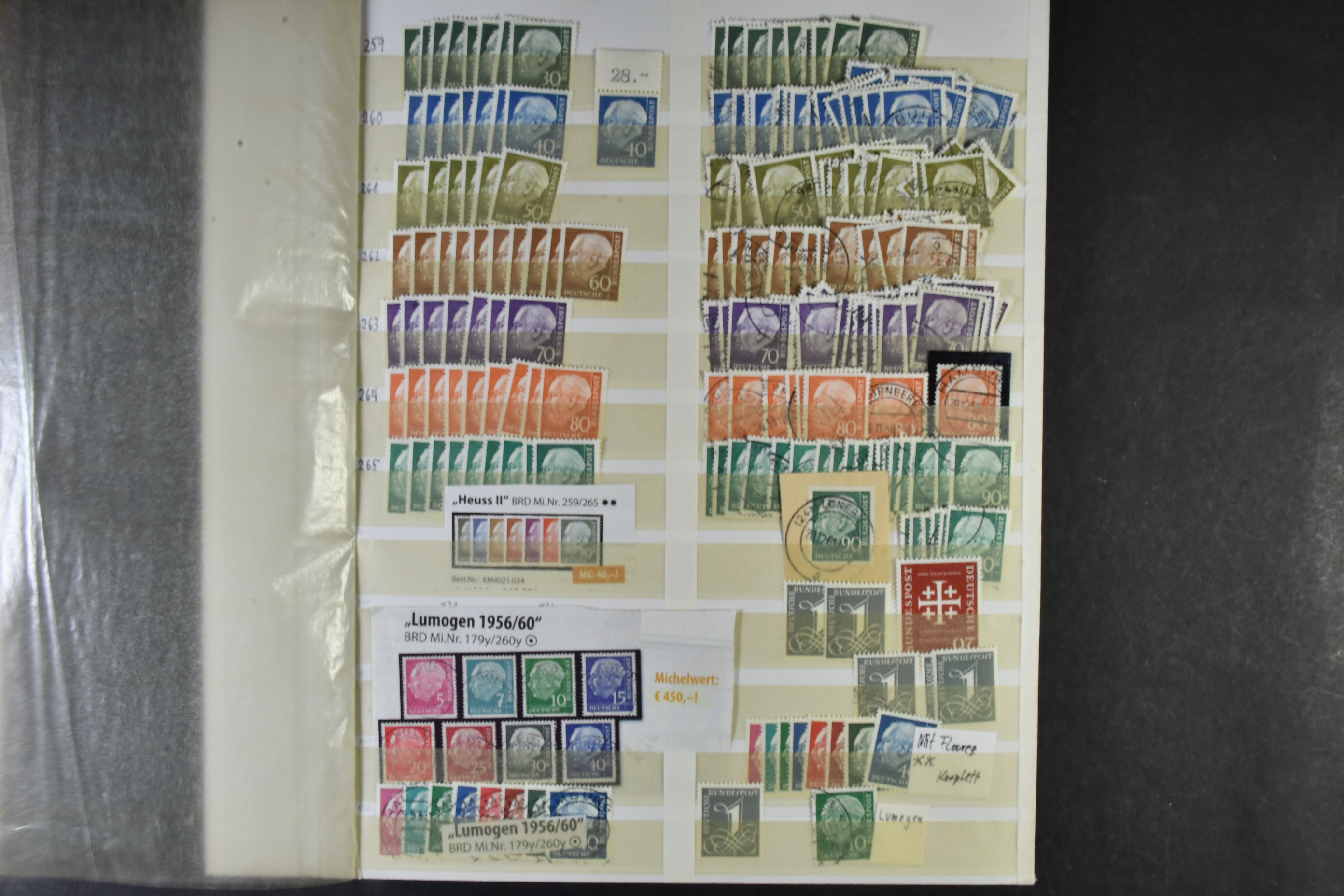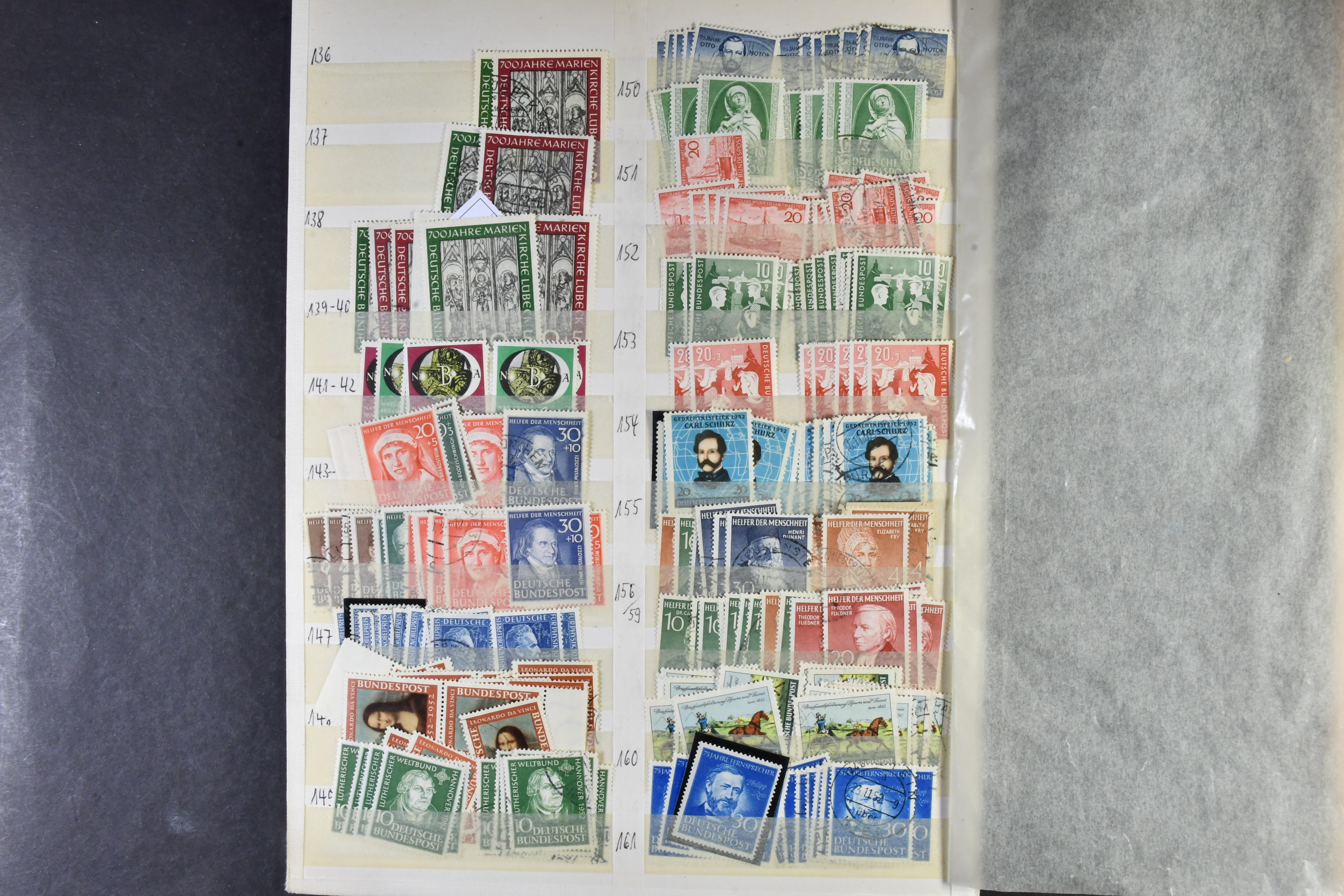 Germany, GFR (BRD). Accumulation ★★/★/⊙ 1949–ca1960 on leaves. The first years of GFR well filled with both mint (mostly **) and used stamps with many better stamps and sets in numbers. Please see a selection of scans at www.philea.se. Good quality. (1000s)
