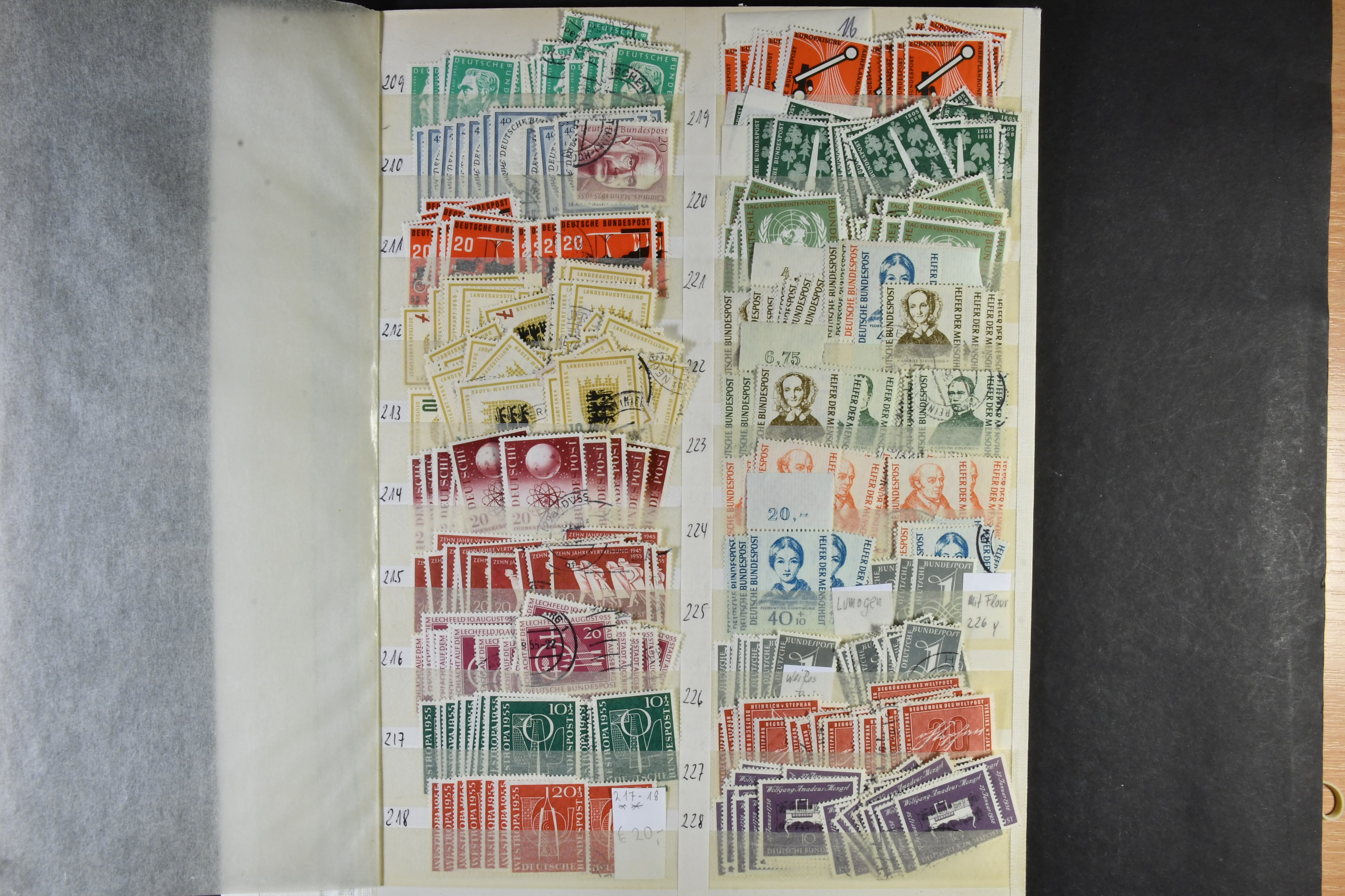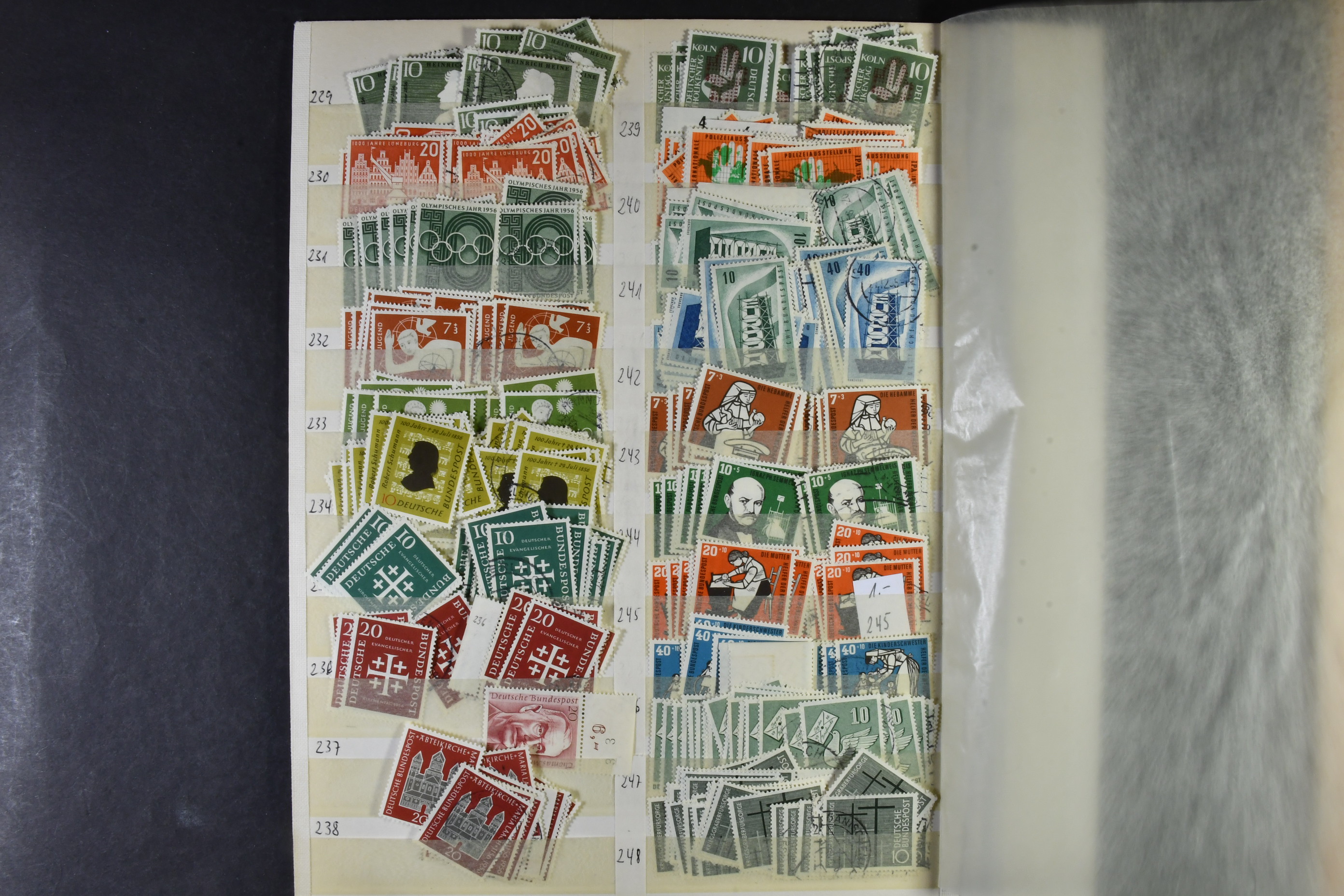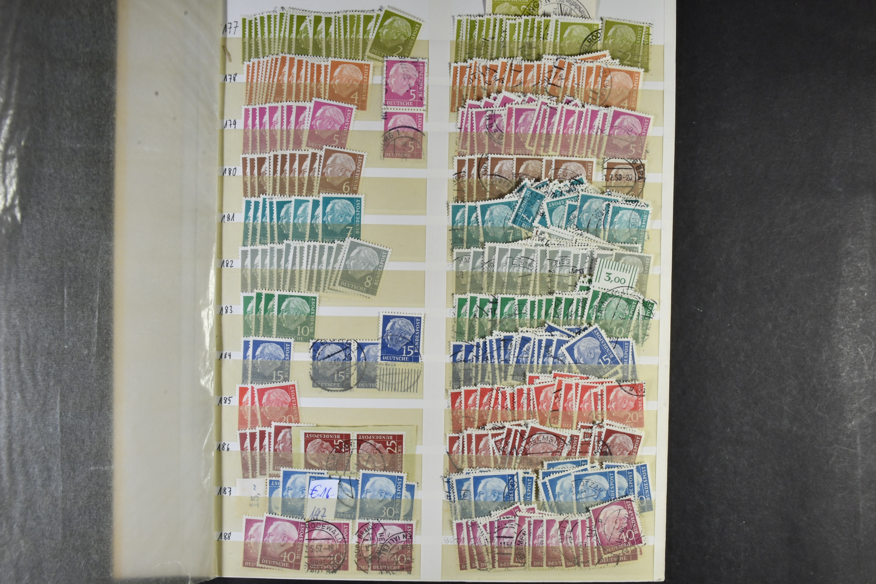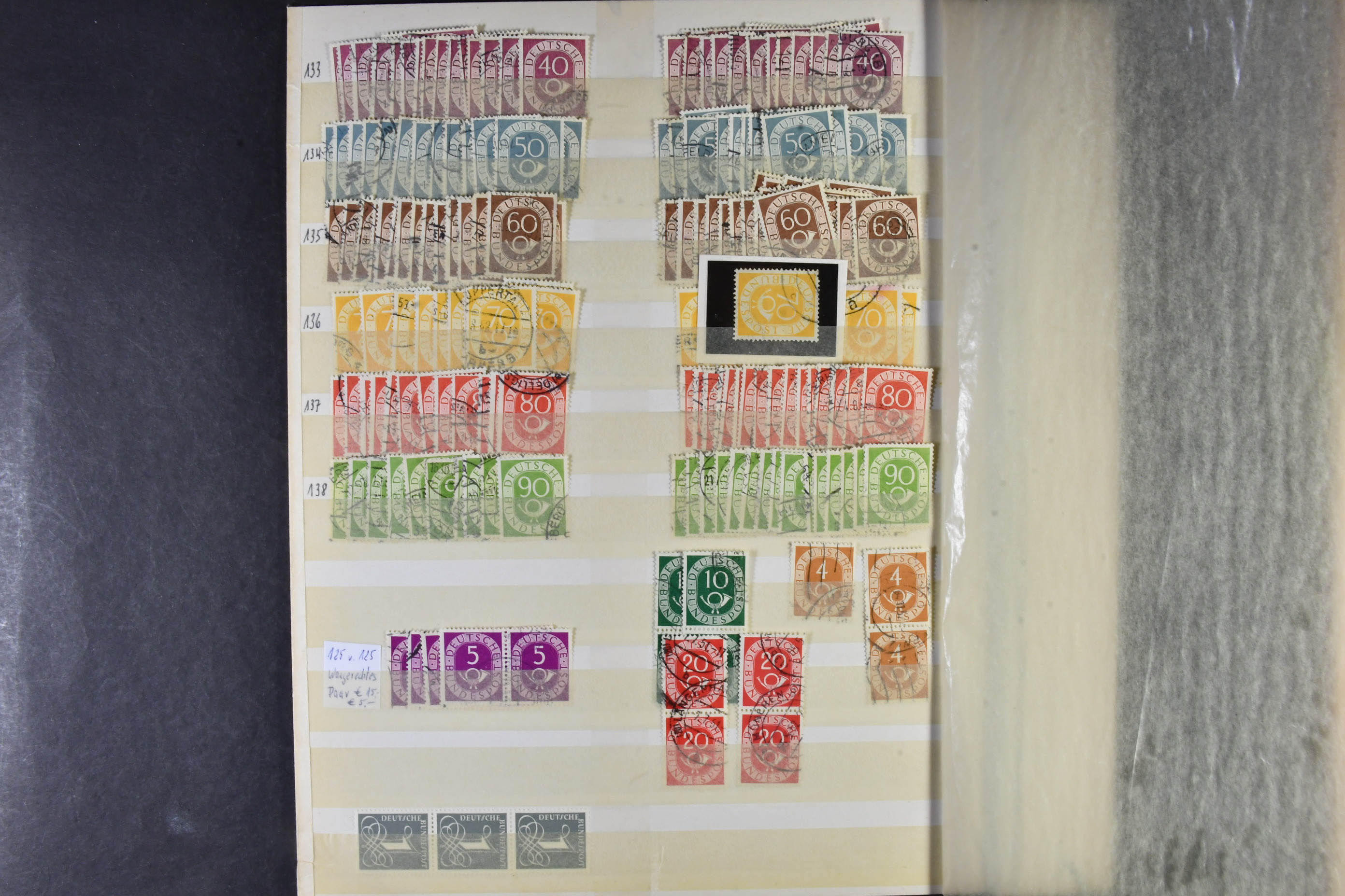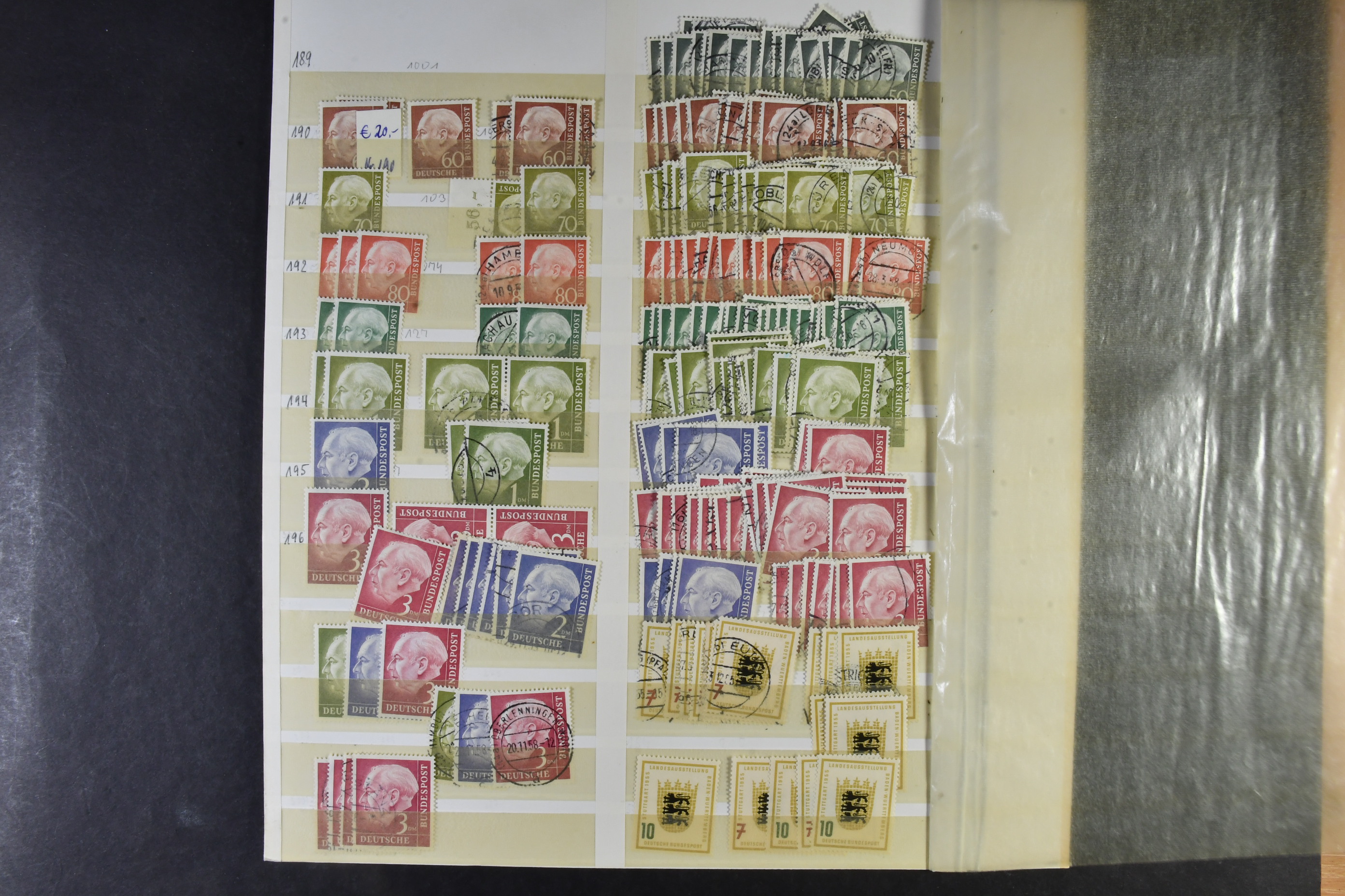Germany, GFR (BRD). Accumulation ★★/★/⊙ 1949–ca1960 on leaves. The first years of GFR well filled with both mint (mostly **) and used stamps with many better stamps and sets in numbers. Please see a selection of scans at www.philea.se. Good quality. (1000s)