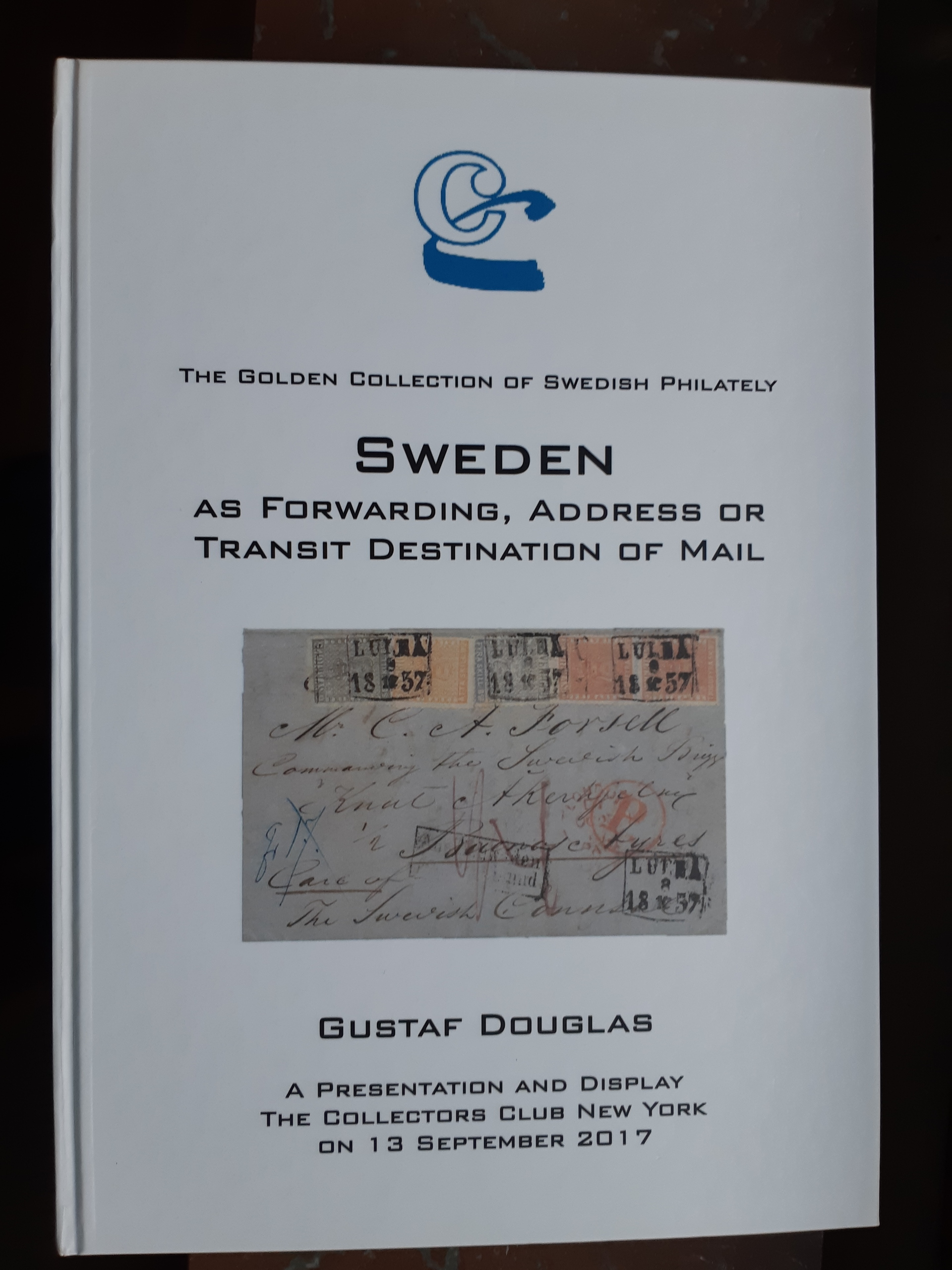 Literature. Douglas, Gustaf, 'Sweden as forwarding, address or transit destination of mail', Collectors Club New York, 2017, edited by Jonas Hällström, 297 pp. Scarce, numbered edition No. 21 of 100 printed. As new.