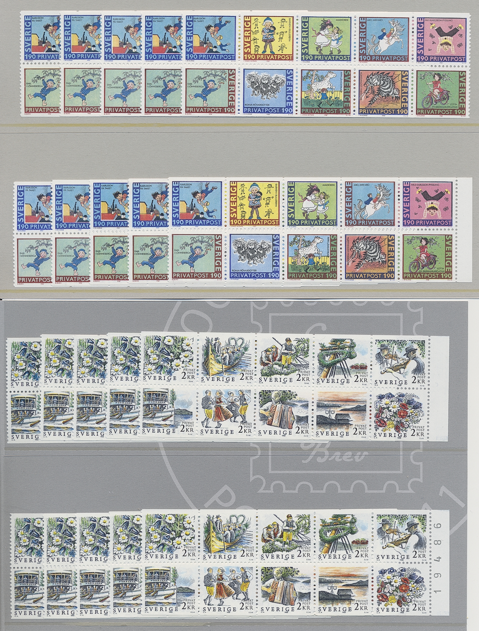 Sweden. Discount stamp booklets, lot 1987–1990. Four hundred discount stamps in blocks of ten (equal to twenty booklets). The entire lot is presented at www.philea.se. (400)