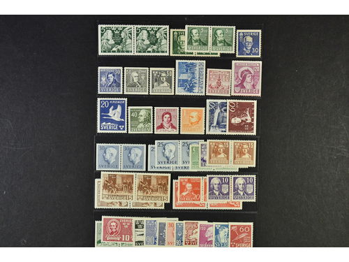 Sweden. ★★. Very fine selection Oscar–1942 incl. e.g. F57–59, 77, some 1924-years, 233a and 246–57 cpl., 15 BC/CB-pairs..