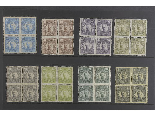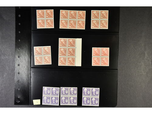 Sweden. ★★/★. Set with 17 different GV Medallion in blocks-of-four F79-96. Facit ca 19000. The entire lot is presented at www.philea.se.