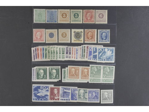 Sweden. ★★. Very fine selection Oscar–1942 incl. e.g. F57–59, 77, some 1924-years, 233a and 246–57 cpl., 15 BC/CB-pairs incl. 269BC+CB and 273BC, F337C, etc. Facit ca. 40000. The entire lot is presented at www.philea.se. (>100) Show less