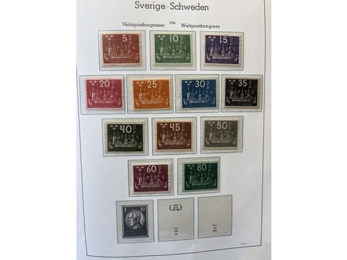 Sweden. Collection ★★ 1938–1955 in SAFE album with stamp mounts. Incl. Stockholmia 55 in blocks of nine. Fine quality. Show less