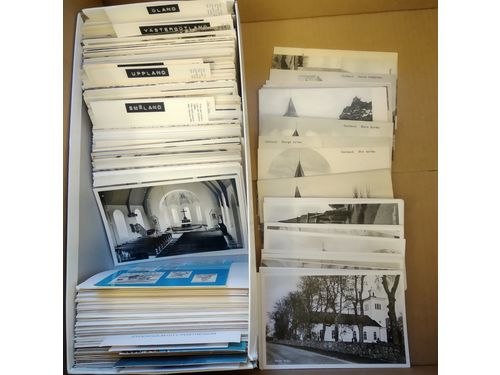 Sweden. Picture postcards. CHURCHES. About 1500 used/unused old small size incl. several Oscar–GV Medallion. Also a shoe box with 100s of various cards old–modern. Approx. 9 kg. Show less