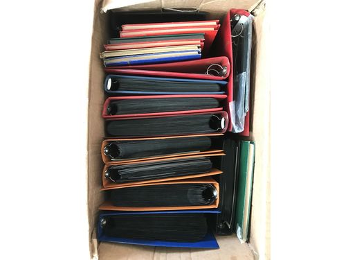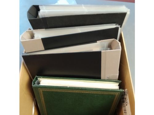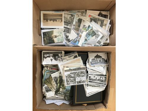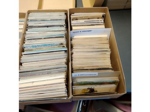 Sweden. Picture postcards, accumulation old–modern in removal box. Sweden and foreign, unsorted in four boxes, incl. thematics and signed, mixed in nine albums/binders (3500+), also large plastic box with modern cards in heavy duplication. Mostly good quality. Approx. 36 kg. Show less