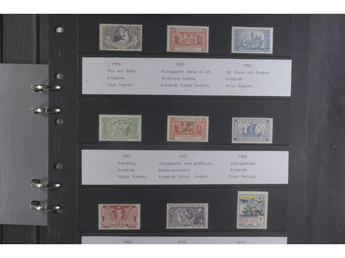 Sweden. Seals, collection 1904–2001 in stockbook and album. SvNf Christmas seals cpl 1904-2000, (1962 onwards in full sheets). SVENSKA FLAGGANS DAG cpl 1916-2001. Virually MNH and in Very Fine condition. Some scans are presented at www.philea.se. Show less