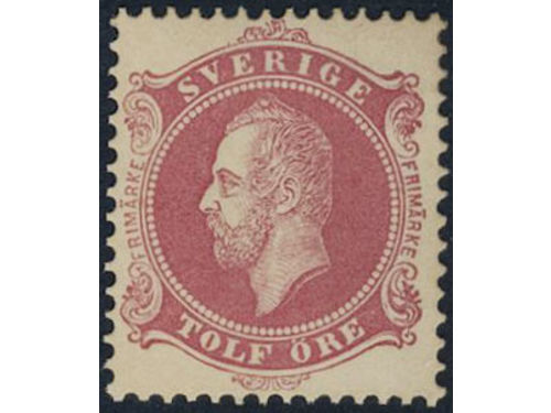 Sweden. Facit 16, 99 (★), C A Nymans proposal stamp TOLF öre in carmine red colour with smooth background. Show less