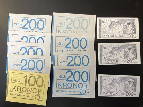 Sweden. Booklets, collection/accumulation 1971–1982 in five Leuchtturm albums with cassette with e.g. nine booklets of 50 kr Falken, Many with cylinder digit, kn and RT. Please see a selection of scans at www.philea.se. Excellent quality. Approx. 15 kg. Show less