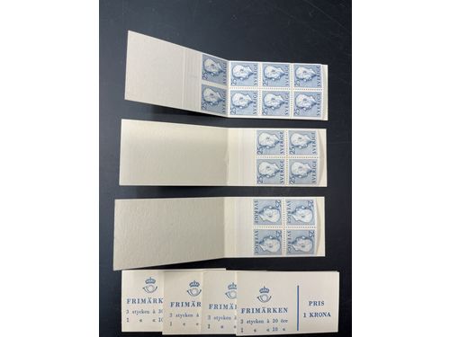 Sweden. Booklets. Two Visir binders with about 210 booklets mainly 1932–72 incl. 22 handmade. Containing e.g. four H23, six H24, one H27, three H28, 29, 31, five Swedenborg incl. four CB, H35C. Further e.g. H60 and 70 and some slot-machine booklets. Please see a selection of scans at www.philea.se. Show less