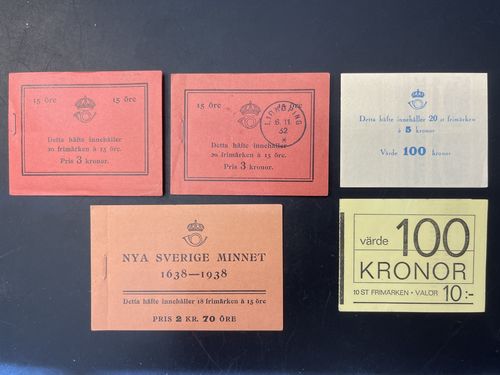 Sweden. Booklets. Five original bundles with 100 booklets in each incl. H180B, three H213 and one H277. Show less