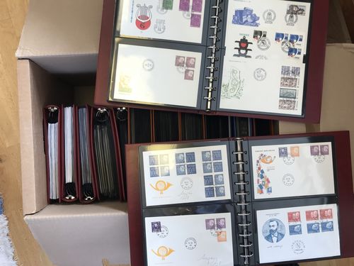 Sweden. FDCs. Removal box with FDCs 1960s–2005 in e.g. six binders and two shoe boxes, some other covers and cards + als..