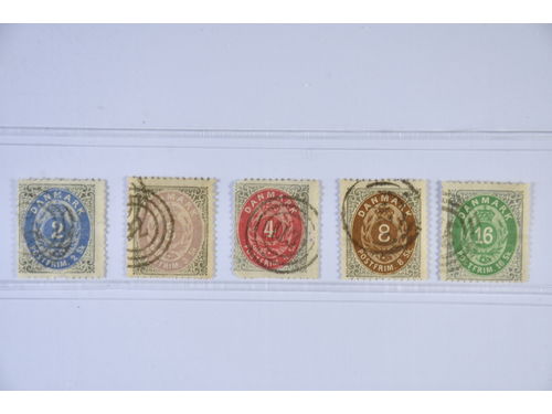 Denmark. Facit 11–15 used, 1864–1870 SET (5). 16 sk with short perf. SEK 4280 Show less