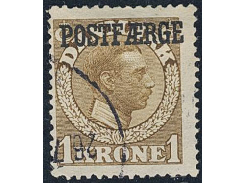 Denmark. Ferry Facit PF10 used, 1919 POSTFÆRGE overprint on King Christian X 1 Kr brown. SEK 1500