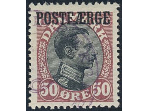 Denmark. Ferry Facit PF5 used, 1920 POSTFÆRGE overprint on King Christian X 50 øre black/wine-red. SEK 2500 Show less