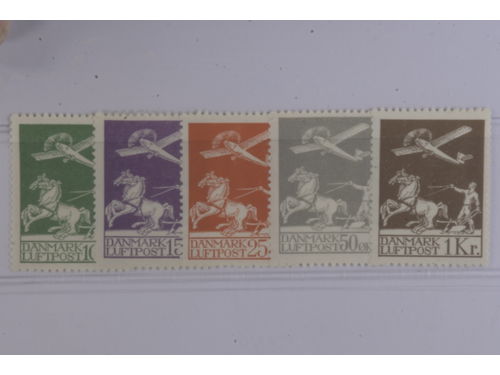 Denmark. Facit 213–17 used, 1925 Air Mail Stamps SET (5). 10 and 15 øre with some toning on perfs. SEK 5500 Show less