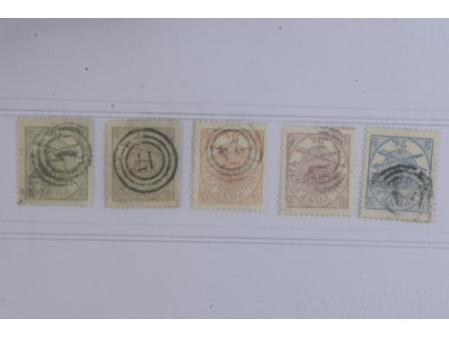 Denmark. Facit 11–15 used, 1864–70 SET (5). 3 s. minor thin in top, 8s cacelled LANDSKRONA 1869, 16s. with parts of three unclear cancels. SEK 4.280 Show less