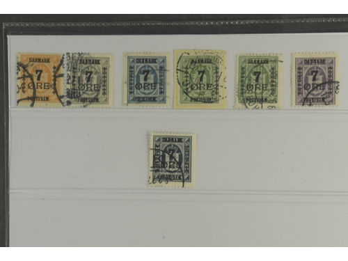 Denmark. Facit 124–30 used, 1926 Surcharge on Official stamps SET watermark cross (7). SEK 2200 Show less