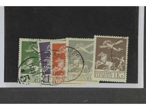Denmark. Facit 213–17 used, 1925 Air Mail Stamps SET (5). 10 and 15 øre with some toning on perfs. SEK 5500