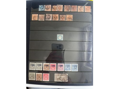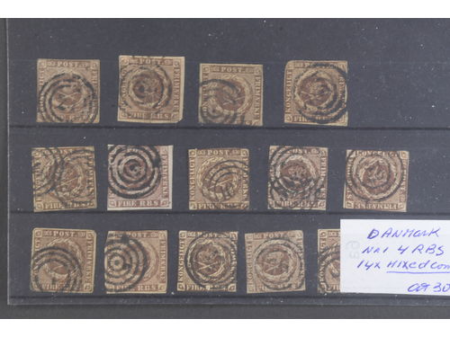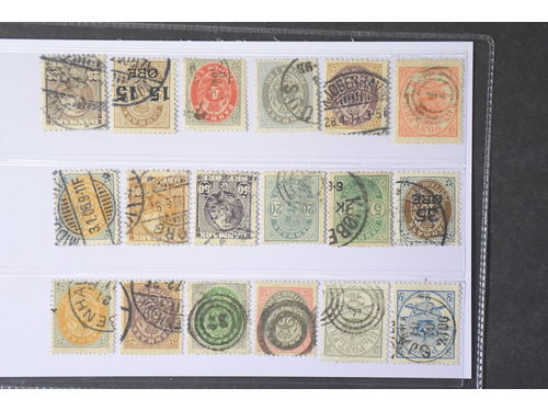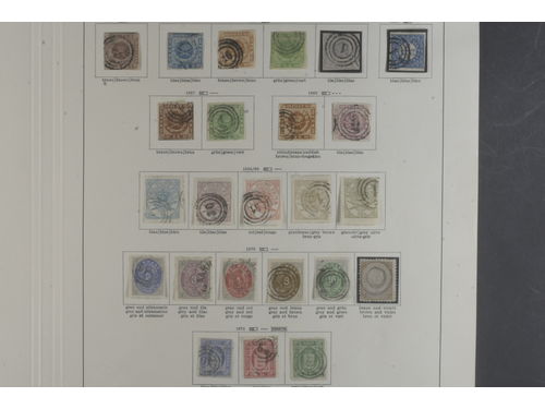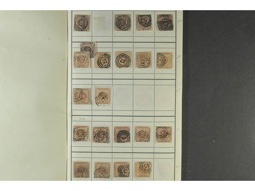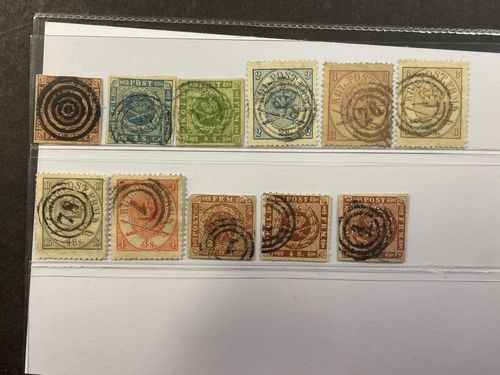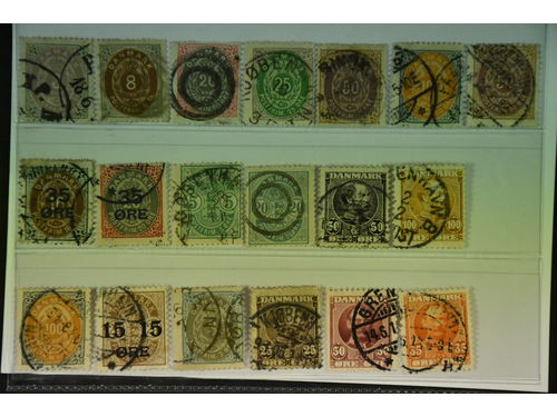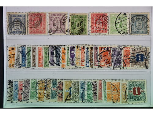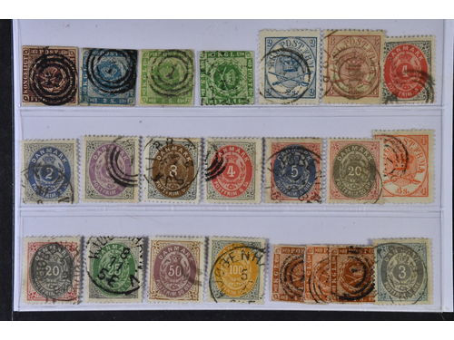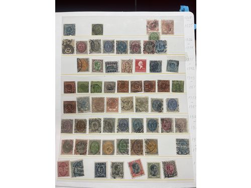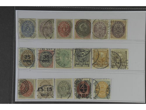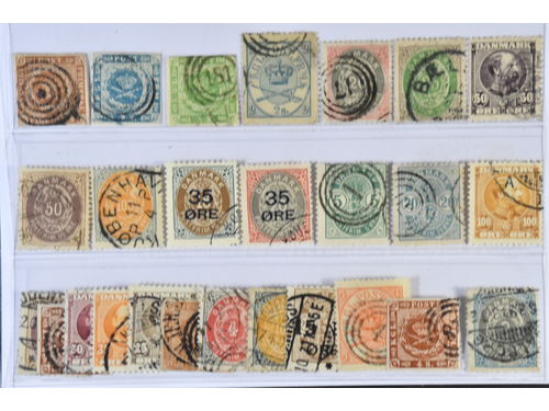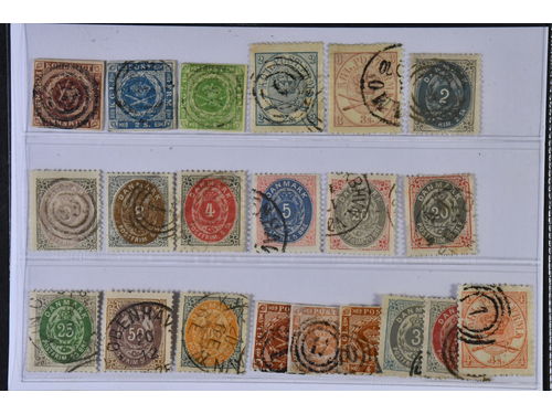 Denmark. Used 1851–1905. All different, e.g. F 2-3, 8, 11, 20, 23-24, 26. Mostly good quality. F SEK 7.300 (13)
