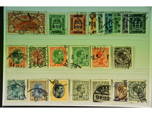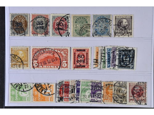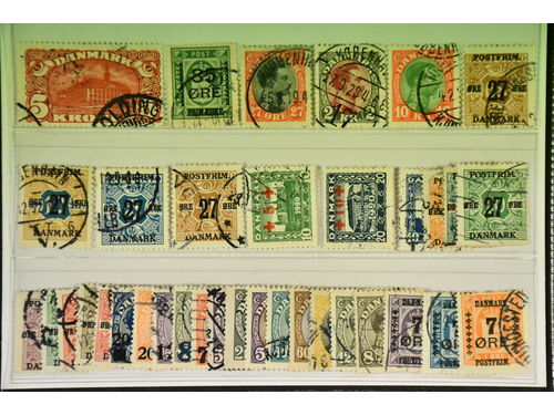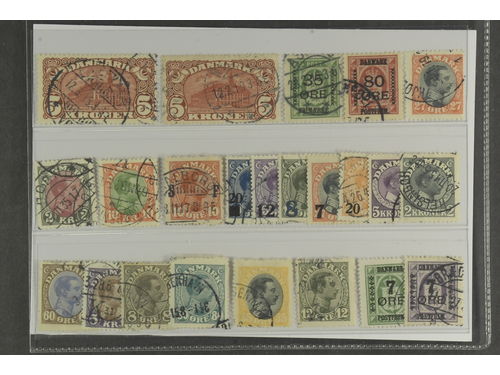 Denmark. Used 1904–1928. All different, e.g. F 48-50, 52, 67-68, 120, 123, 125, 144, 162, 164, 169. Mostly good quality. F SEK 10180 (35)