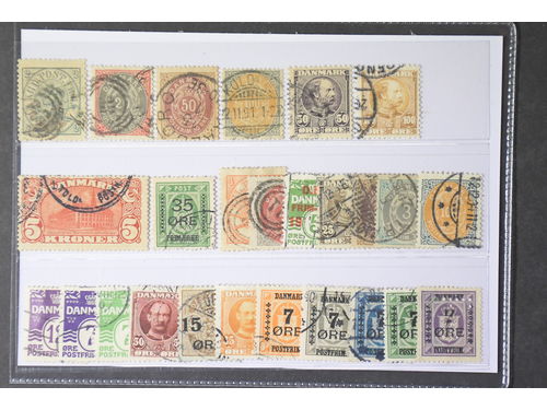 Denmark. Used 1875–1906. All different, e.g. F 34-37, 48-50, 52, 67-68. Mostly good quality. F SEK 6.735 (17)
