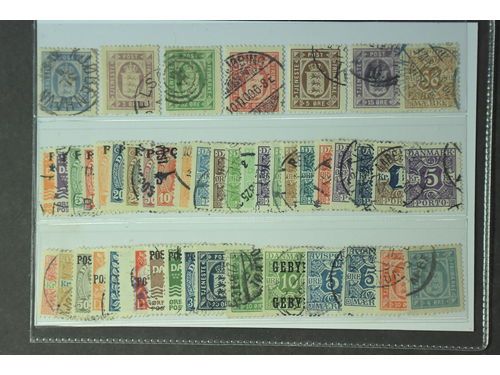 Denmark. Used 1875–1950. Back-of-the-book. All different, e.g. Tj6, 9, 14, 23, TI 1-20, Pf 1, 2a+b, 3, 6-7, 16-17, 23-25..