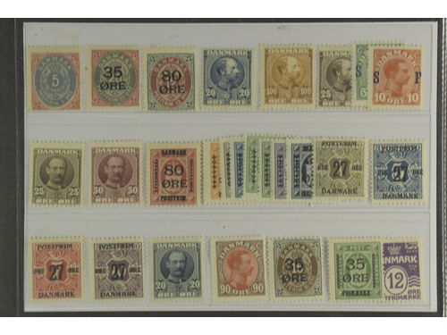 Denmark. Collection ★★/★. Most Official-, Postage Due-, Postal Ferry-stamps on Leuchtturm leaves. The entire lot is presented at www.philea.se.