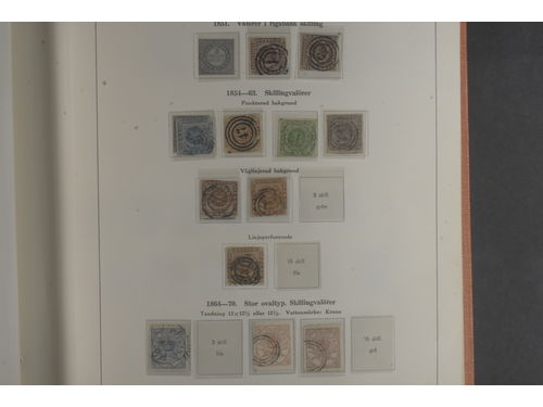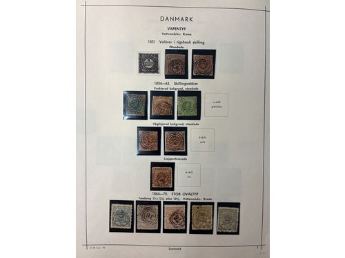 Denmark. Collection mostly used 1851–1976 in Facit album with stamp mounts. With some a bit better, 16 skilling values, both Post Office. Please see a selection of scans at www.philea.se. In the beginning mixed quality, later fine. Show less