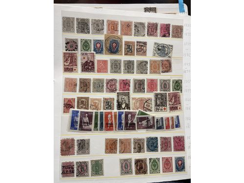 Finland. Accumulation used 1880s–1920s in box. Two albums and two stockbooks plus some loose visirpages with all types of cancels incl. Dual language and a lot of double circle. Interesting lot with low reserve. Please see a selection of scans at www.philea.se. Mostly good quality. Approx. 6 kg. (c4000) Show less