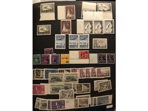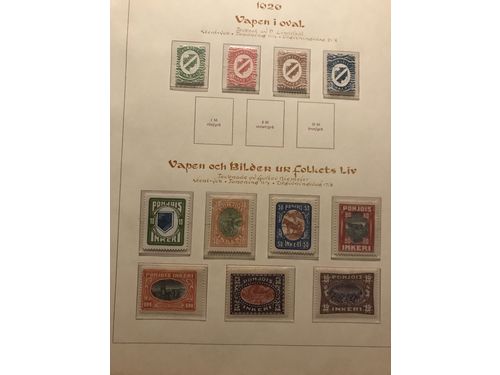 Finland. Collection ★★/★/⊙ 1856–1990 in Leuchtturm album. Starts with a 10 kopek (small faults) and a few serpentines. Good section of Coat-of-arms m/75 and m/89 with rings up to 1r mint, etc. From 1931 to mid 80s almost complete incl. Bus Parcel stamps (most of them **). Please see a selection of scans at www.philea.se. Mostly fine quality. (ca. 900) Show less