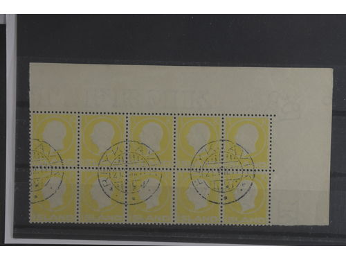 Iceland. Facit 118 used, 1912 King Frederik VIII 1 Kr yellow in block-of-ten (some split perf). Canc. REYKJAVIK 21.8.17. SEK 6500 Show less
