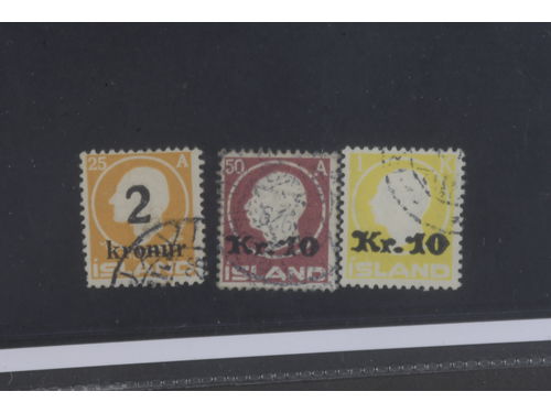 Iceland. Facit 121–23 used, 1924 Surcharge SET (3). Certificate Lasse Nielsen. SEK 11200 Show less