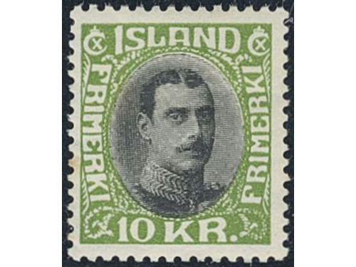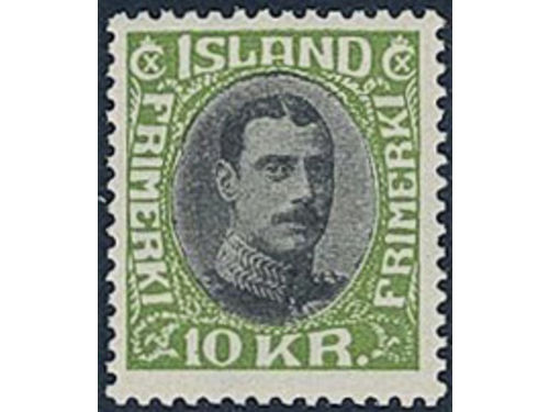 Iceland. Facit 157 ★★, 1931 King Christian X 10 Kr black/green close, unbroken lines. Opinion CAM. SEK 9500 Show less