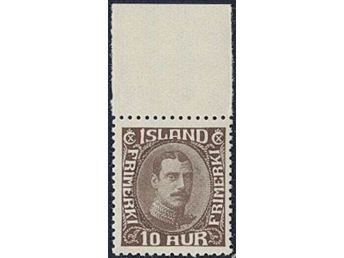 Iceland. Facit 151 ★★, 1932 King Christian X 10 aur brown close, unbroken lines. Margin ex. SEK 5500