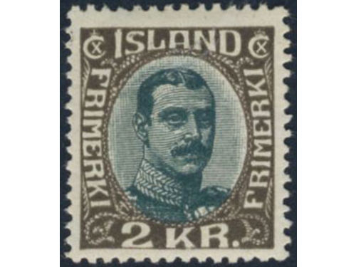 Iceland. Facit 156 ★★, 1931 King Christian X 2 Kr green-grey/brown close, unbroken lines. SEK 9500