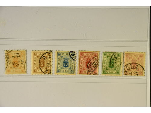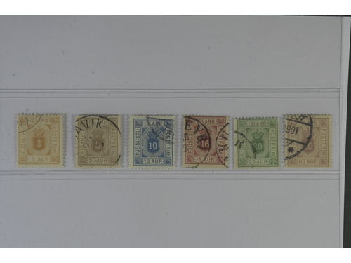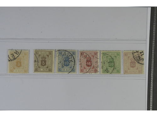 Iceland. Official Facit Tj4–9 used, 1876-1904 Cout-of-arms SET (6). SEK 2.480