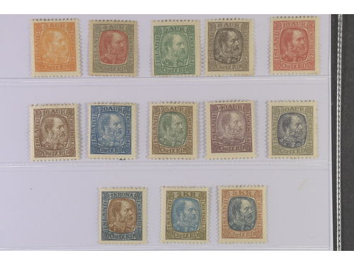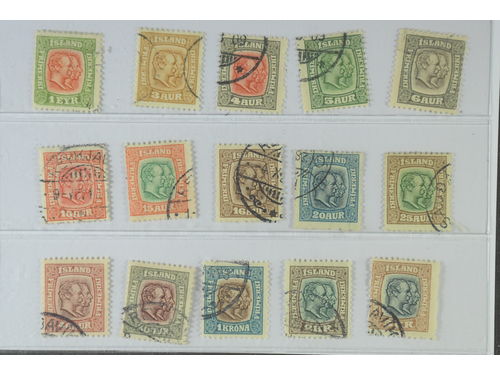 Iceland. Facit 76–90 used, 1907 Two Kings SET watermark crown (15). SEK 4800