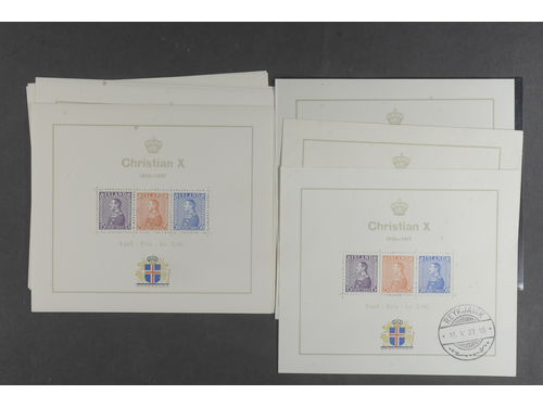Iceland. Facit 221–23 used, 1937 Christian X, 25th anniversary as regent souvenir sheet 1 (1). 3 used and 8 ** copies. SEK 13500