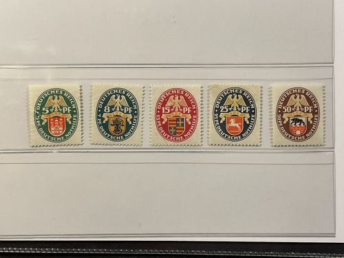Germany, Reich. Michel 425–29 ★★/★, 1928 Charity – Coat-of-Arms III SET (5). 5 pf *, the others **. EUR 240 Show less