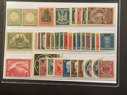 Germany, mixed. Collection ★★/★/⊙ on old leaves. Genelaj Government, Luxemburg, Elsass, Ukraine, Bohemia and Moravia. Many complete sets in good condition both x or xx and used. Somewhat mixed quality. Show less