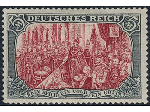 Germany, Reich. Michel 81A ★, 1902 Different designs 5 M black-green/dull carmine, perf 26:17. Owners mark. EUR 280