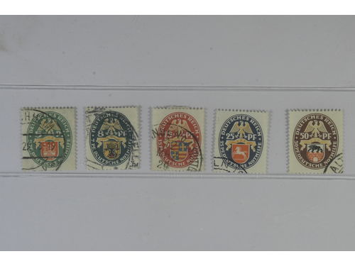 Germany, Reich. Michel 425–29 used, 1928 Charity – Coat-of-Arms III SET (5). EUR 200