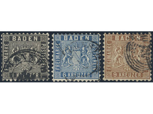 Germany, Baden. Michel 13–15 used, 1862 Coat-of-arms SET (3). Very fine. EUR 330 Show less