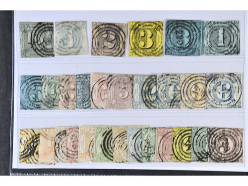 Germany, states. Lot mostly used 1850s–1871 on leaves. Incl. a few better. The entire lot is presented at www.philea.se...